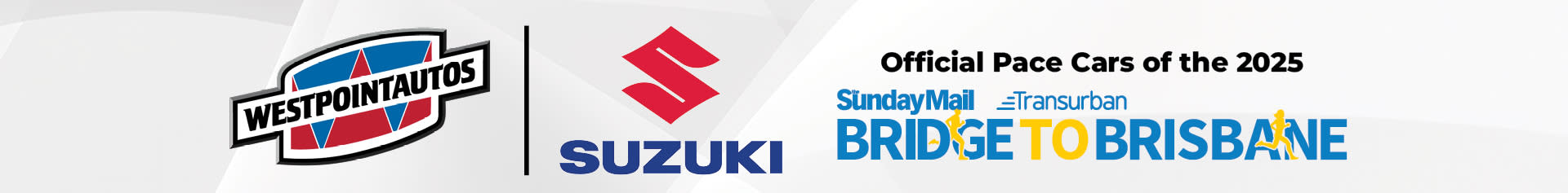 Terms and Conditions apply. Westpoint Autos’ Bridge to Brisbane competition is valid for one (1) entry per person during the Bridge to Brisbane event date on 14/09/2025. To entry the competition, they must be a participant of the Bridge to Brisbane event and have entered their details on the entry form. Competition will close on 14/09/2025 at 23:59. Prizes include a Brisbane Roar Family Pass or a Suzuki Prize Pack. Suzuki Prize Pack is worth $400 of Genuine Suzuki Merchandise provided by Suzuki Queensland. The Brisbane Roar Family Pass and Suzuki Prize Pack will be drawn on Friday 19/09/2025. Winners will be notified by contact details supplied on the entry form, and if not claimed within 24 hours of draw, prize is forfeited, and prize will be redrawn. Offer cannot be redeemed for cash, returned for a refund or transferred. Westpoint Autos reserves the right to amend these Terms and Conditions at any time.