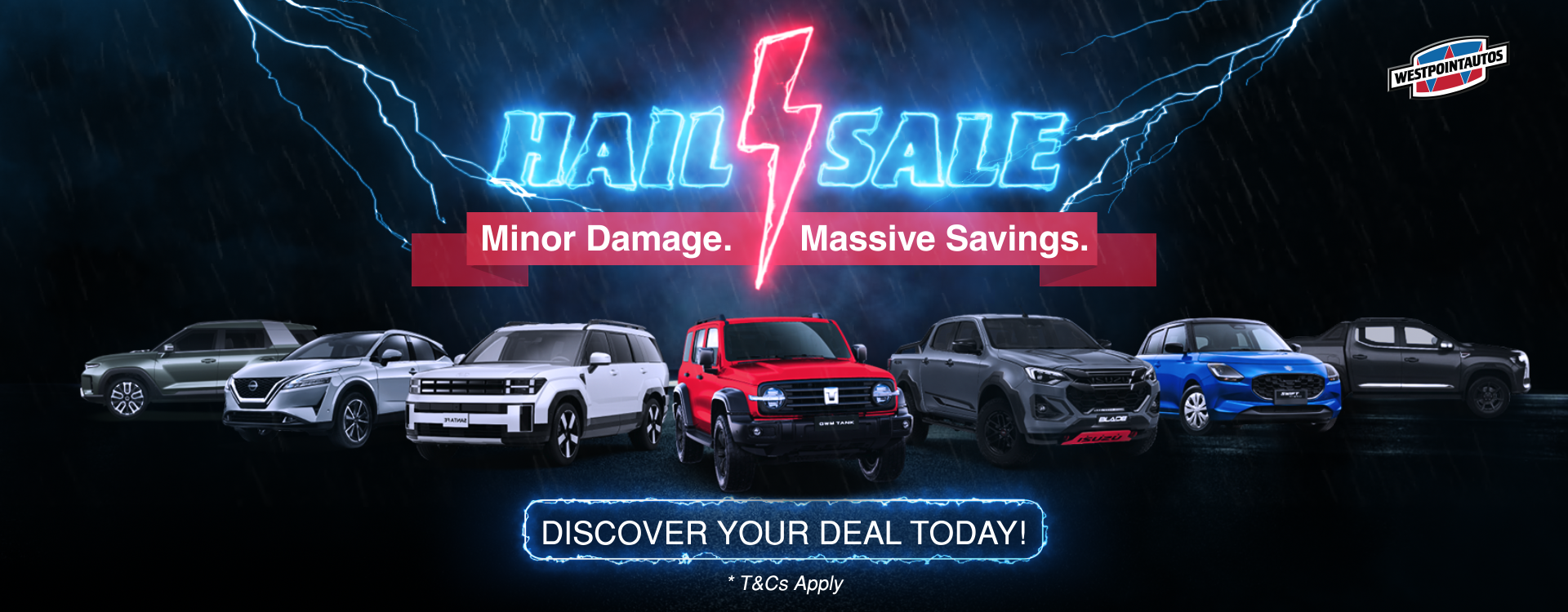 Hundreds of new and used vehicles with light hail damage, now unmissable prices.